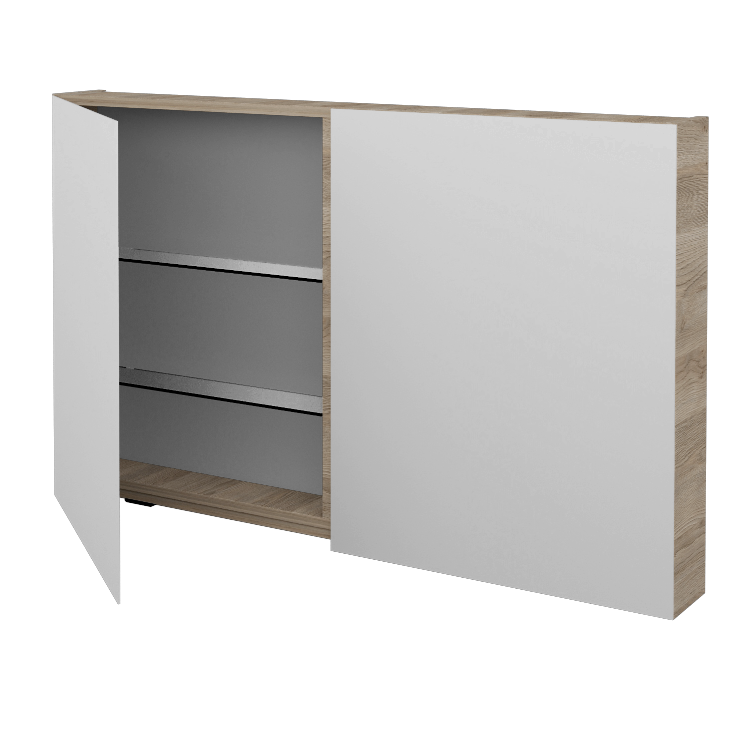 • Der Spiegelschrank bietet dank doppelseitiger Spiegel eine große Spiegelfläche.