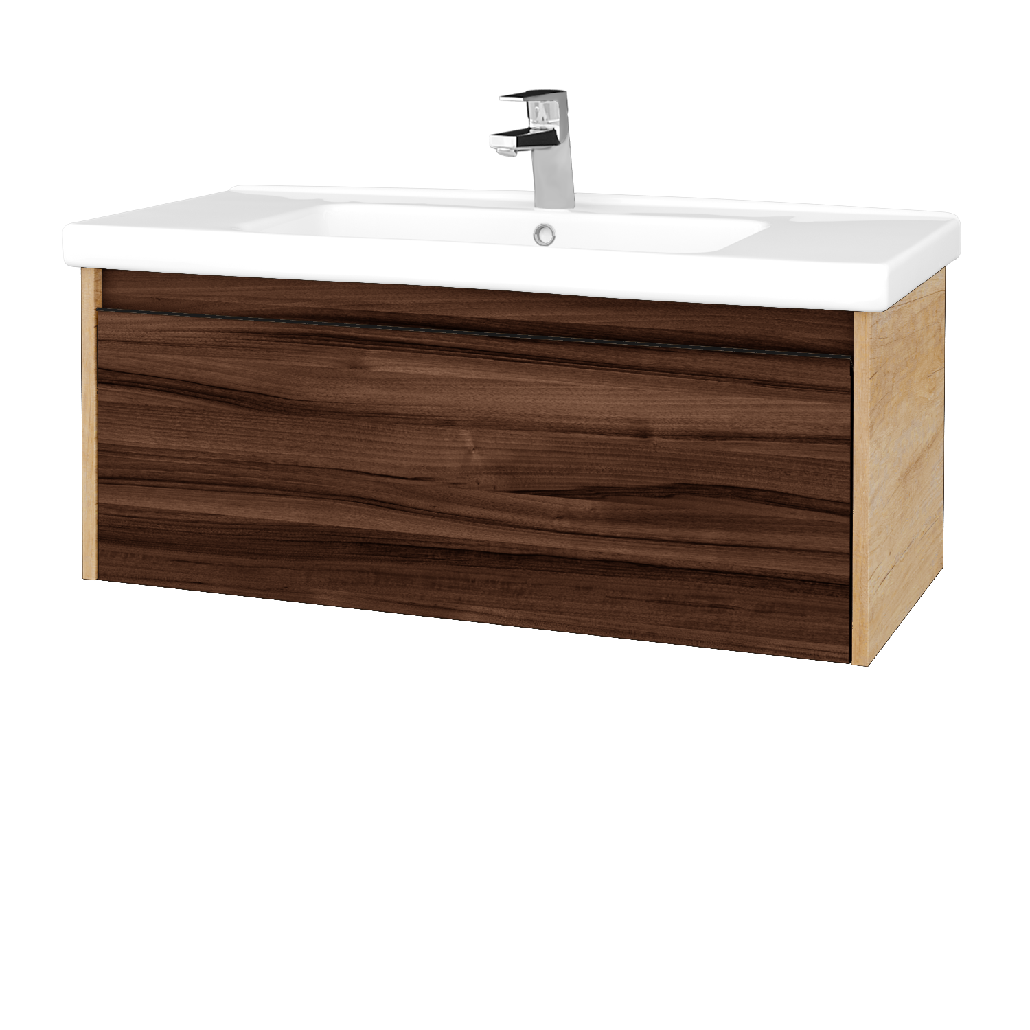 Waschtischunterschrank LOGI SZZ 100 (Waschtisch Harmonia)  - D15 Eiche Nebraska - D06 Nussbaum Express Lieferung Abgesenkter Siphon