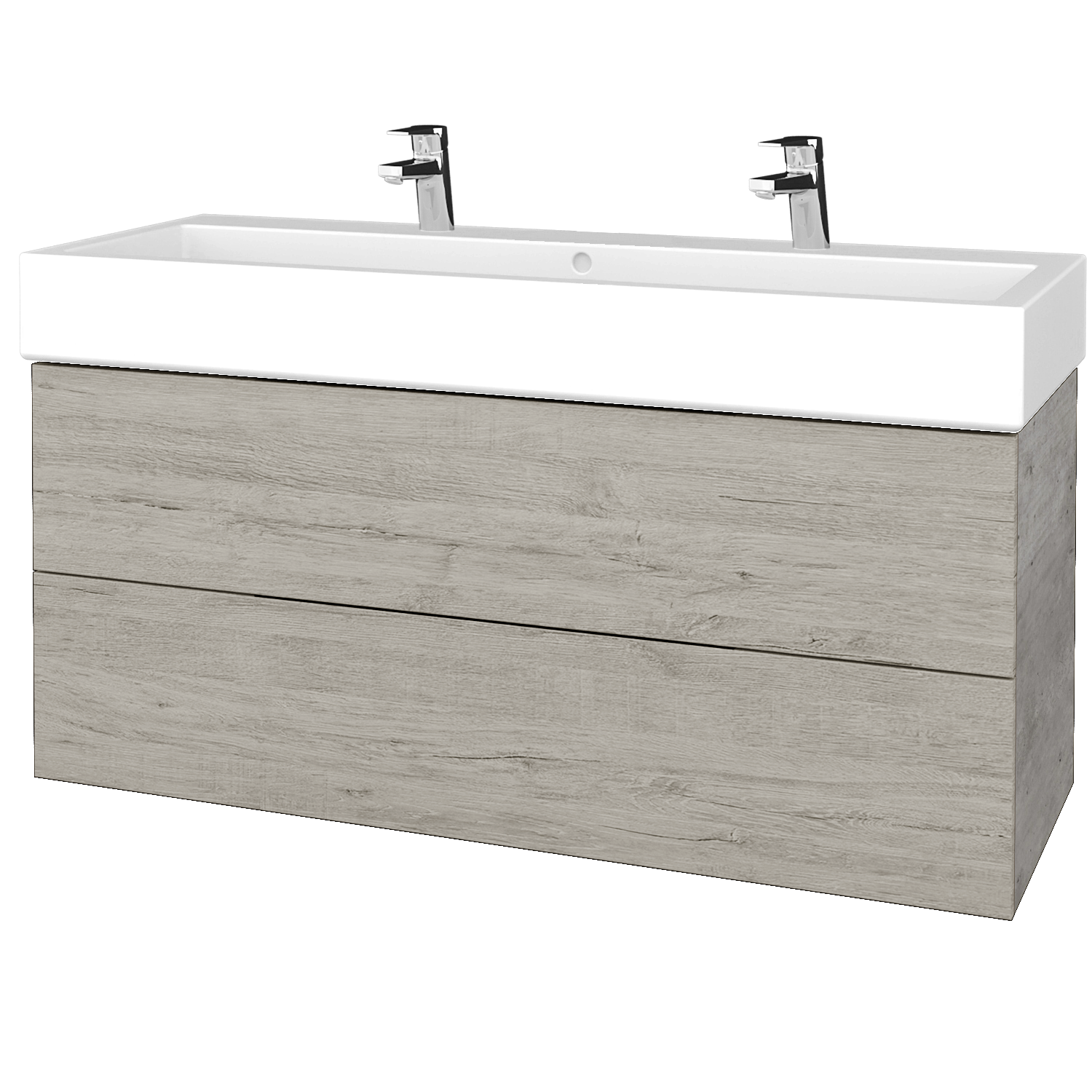 Waschtischunterschrank FLAT SZZ2 120 (Waschtisch Duravit Vero mit 2 Hahnlöchern)  - D01 Beton - D05 Oregon Preis ohne Waschbecken
