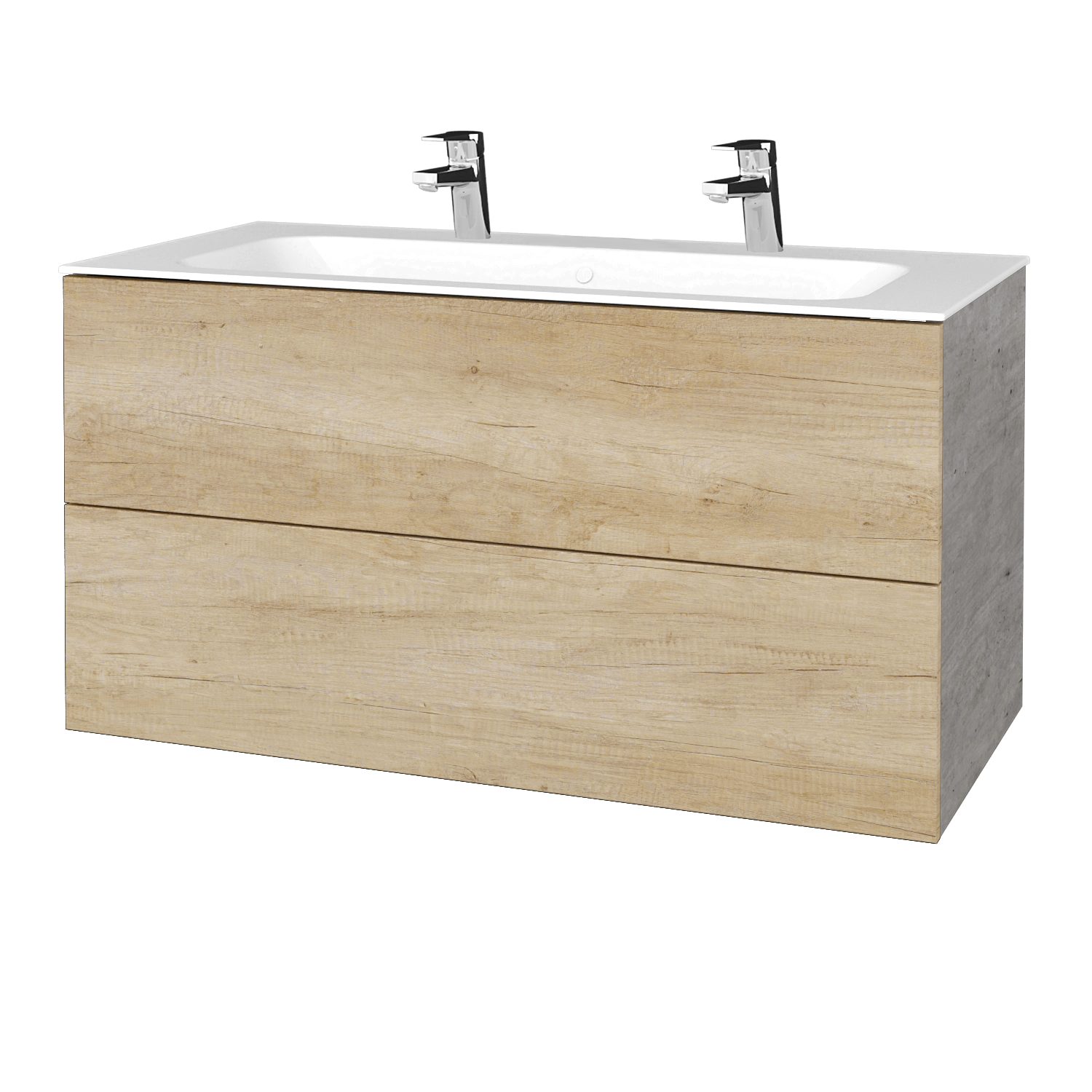 Waschtischunterschrank FLAT SZZ2 100 (Waschtisch Finion mit 2 Hahnlöchern)  - D01 Beton - D15 Eiche Nebraska Preis ohne Waschbecken