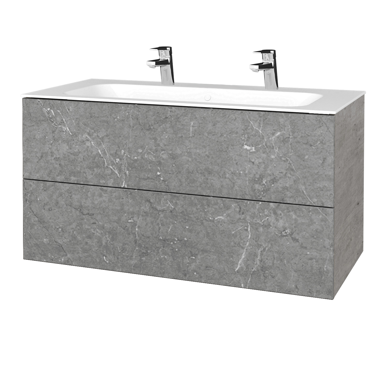 Waschtischunterschrank FLAT SZZ2 100 (Waschtisch Finion mit 2 Hahnlöchern)  - D01 Beton - D20 Galaxy Preis ohne Waschbecken