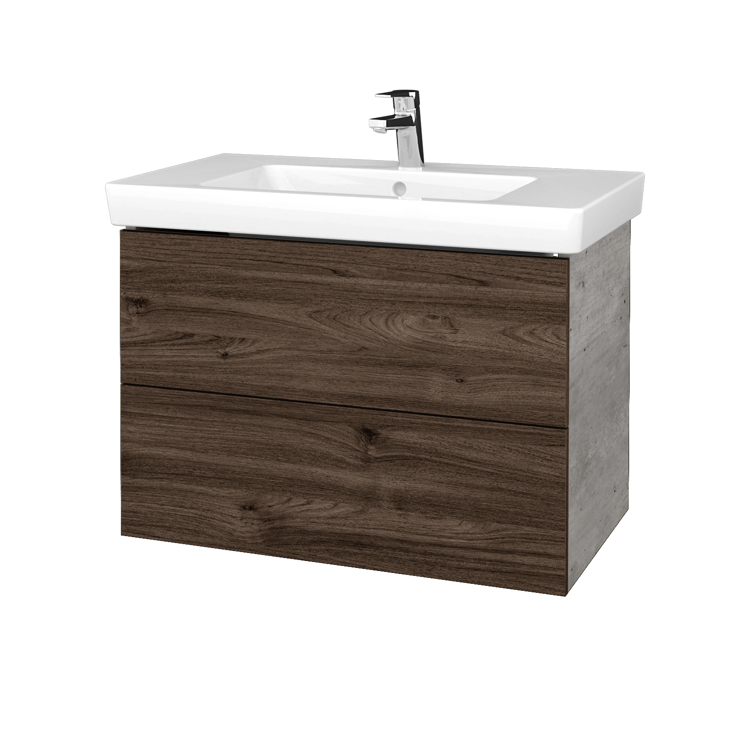 Waschtischunterschrank FLAT SZZ2 80 (Waschtisch Subway 2.0)  - D01 Beton - D25 Teak Preis ohne Waschbecken
