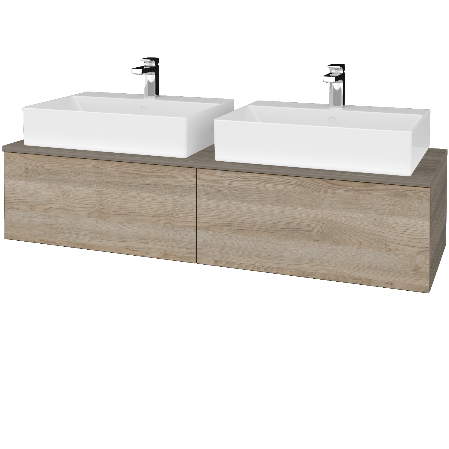 Waschtischunterschrank (1400x500x318) mit 2 Auszügen und 2 Keramikwaschtischen Kube Mehr anzeigen
