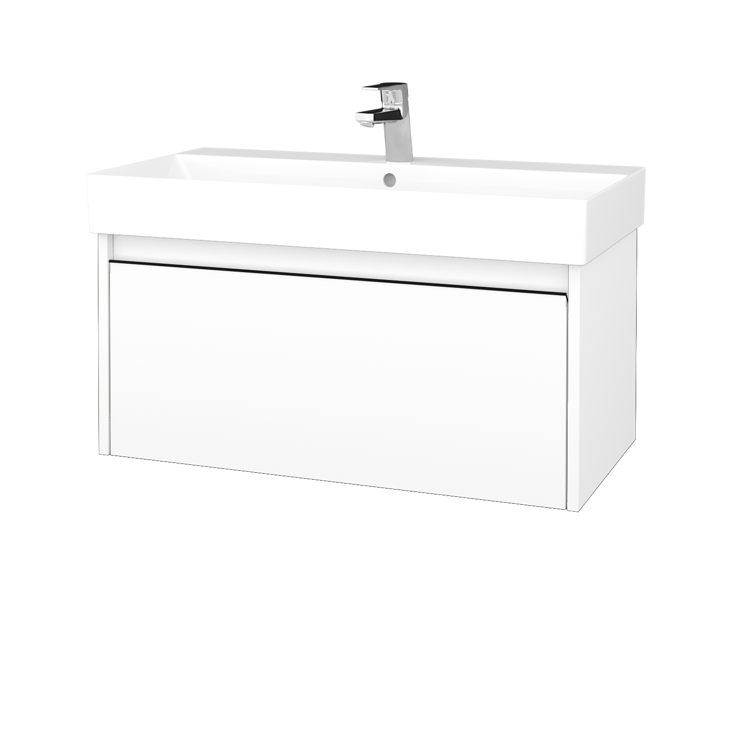 Waschtischunterschrank LOGI SZZ 85 (Waschtisch Glance 85)  - N01 Weiß Hochglanz - Griffes T33 - Schwarz matt - N01 Weiß Hochglanz Neuheit Express Lieferung