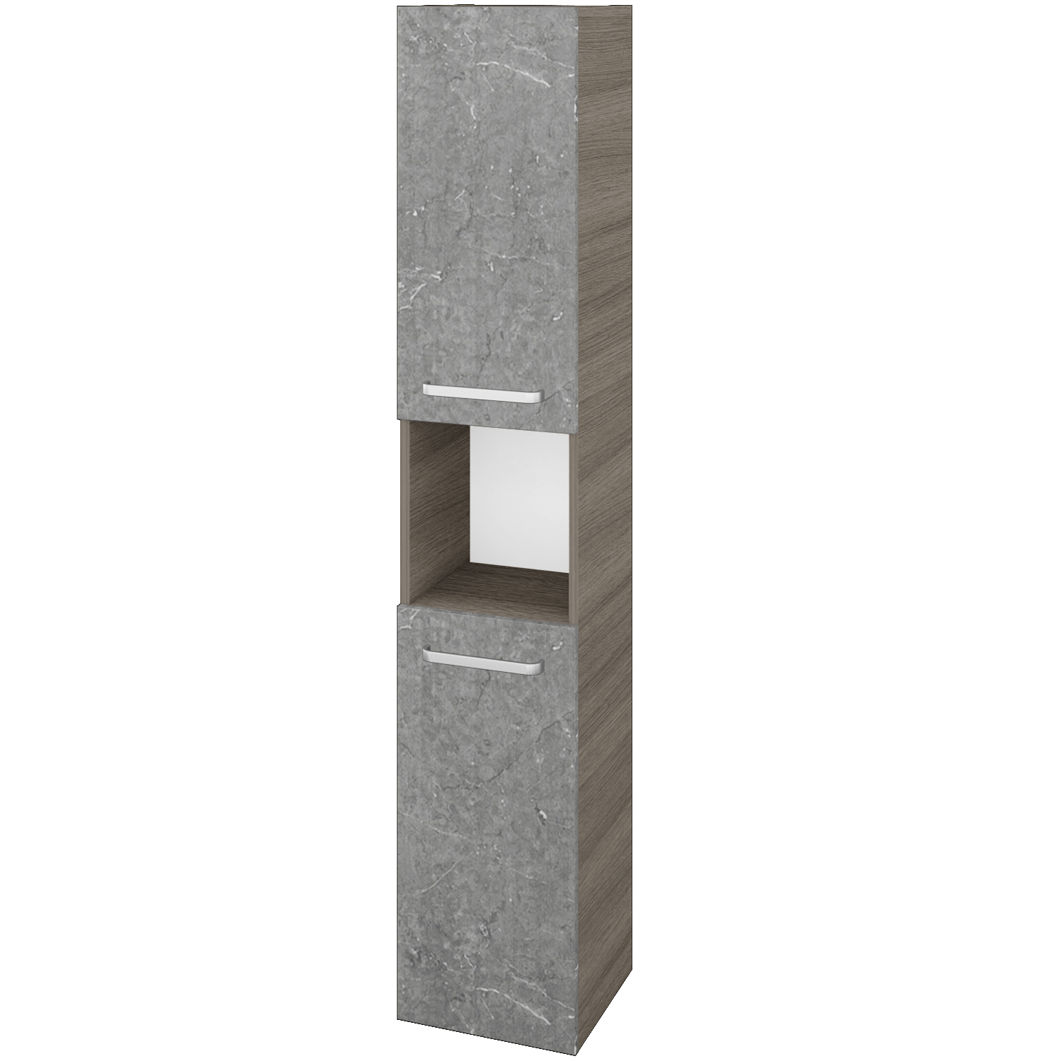 Der hängende Hochschrank UNI SVD2O 35 ist in zwei Hälften geteilt und hat in der Mitte ein praktisches offenes Regal, das Sie für den alltäglichen Bedarf oder kleine Dekorationen nutzen können. In jedem Teil hinter der Tür finden Sie 4 höhenverstellbare Glasregalböden. Der Hochschrank im Bad bietet viel Stauraum. Die Maße dieses Schrankes betragen 35 cm in der Breite, 35,2 cm in der Tiefe und 198,2 cm in der Höhe. Bei der Bestellung können Sie den Türanschlag des Schranks in der gewünschten Richtung wählen. Sie können zwischen mehreren Türgriffen in verschiedenen Designs wählen oder sich für die grifflose Push-to-open-Variante entscheiden.