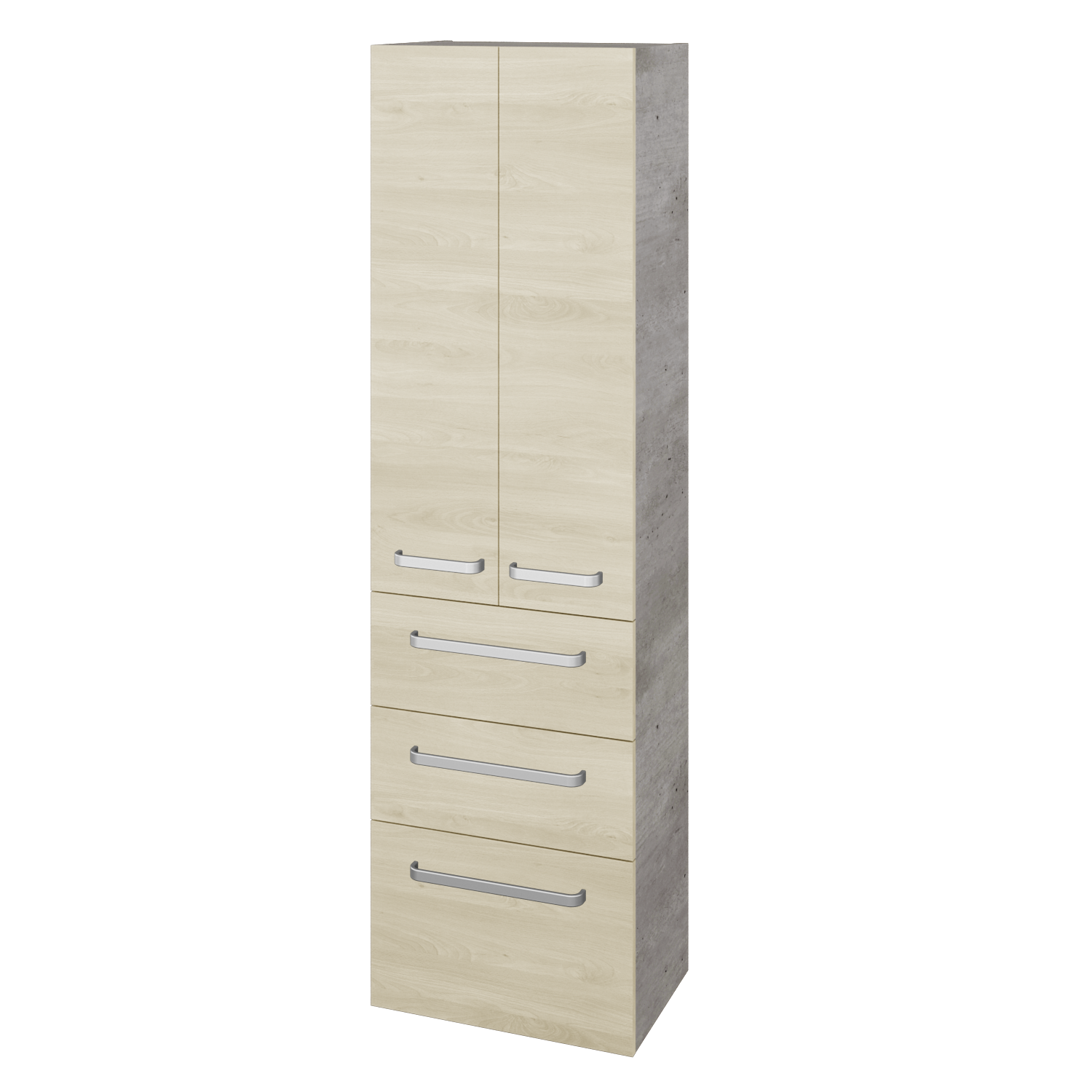 In dem geräumigen Hochschrank UNI SVD2Z3 50 können Sie alles verstauen. Der Schrank ist in einen oberen Teil mit 2 höhenverstellbaren Glaseregalböden und einen unteren Teil mit 3 Schubladen in verschiedenen Höhen unterteilt. Der 50 cm breite Schrank hilft Ihnen also, Ihr Bad schnell und einfach aufzuräumen. Wählen Sie zwischen verschiedenen Griffvarianten, um Ihr Bad zu verschönern.
