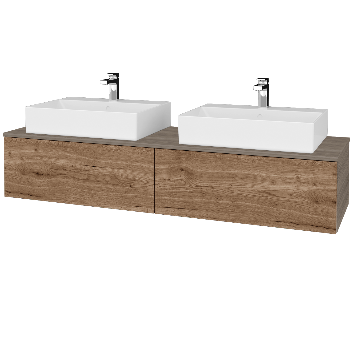 Waschtischunterschrank (1600x500x318) mit 2 Auszügen und 2 Keramikwaschtischen Kube Mehr anzeigen