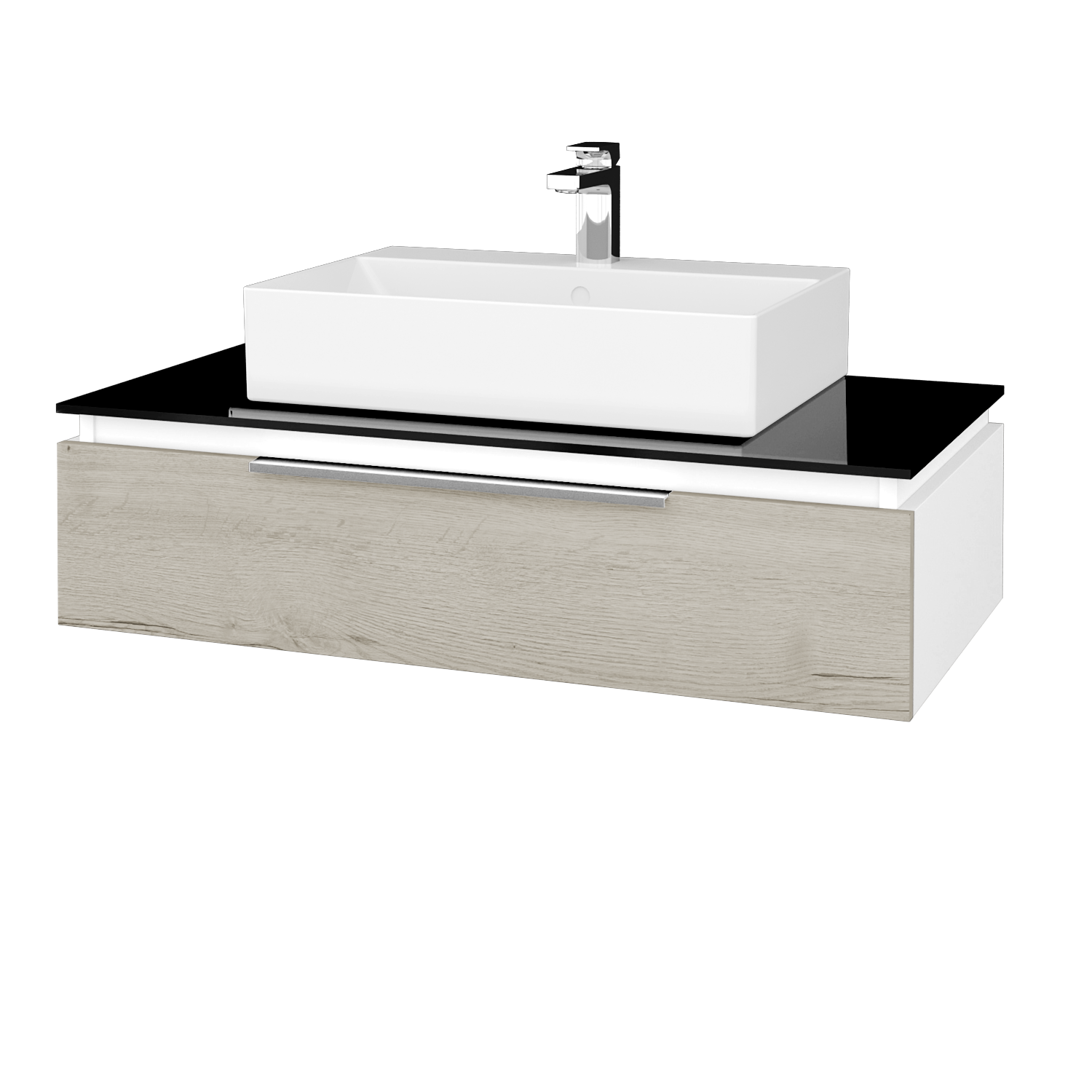 Der Waschtisch dieses GLOBE-Badeschranks ist auf einer speziellen schwarzen Glasplatte montiert. Schauen Sie sich die GLOBE Schrankvariante mit einer schwarzen Glasplatte an, sie ist ebenfalls Ihre Aufmerksamkeit wert. Der Raum rund um den Waschtisch bietet somit nicht nur eine markante Abgrenzung zu anderen Kollektionen, sondern auch viel Platz zum Verstauen von Alltagsgegenständen. Außerdem können Sie aus einer Vielzahl von Farboptionen für den Korpus und die Schublade wählen. Soll es eines der vielen Dekore, Holzdekore, Hochglanz- oder Mattlacke oder RAL/NCS-Farben sein? Der Schrank hat auch automatische LED-Innbeleuchtung (bei der Eröffnung der Waschtischunterschrank).